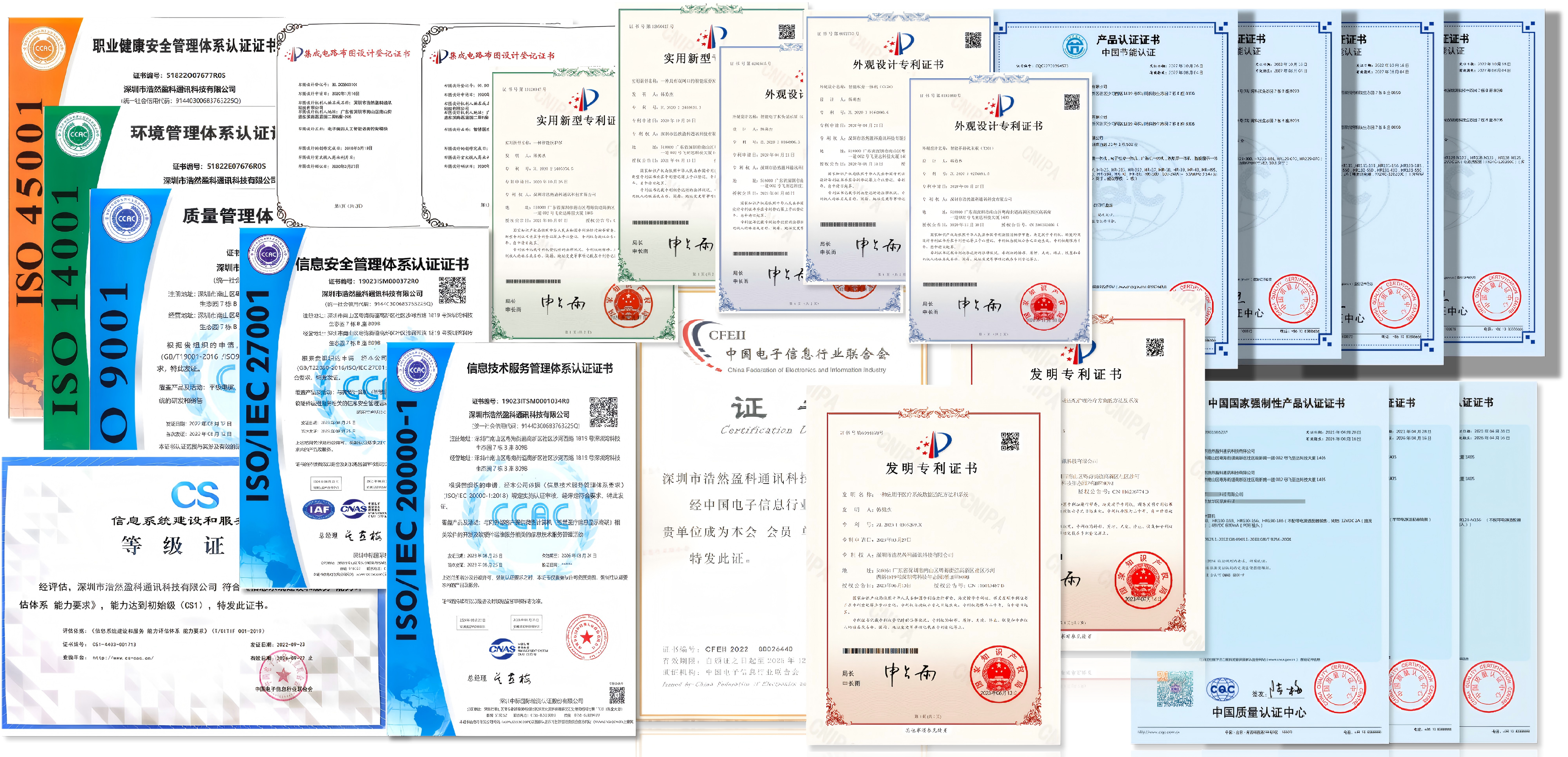 公司经过多年发展已经累计获得100+各类型的专利及国家级体系证书。