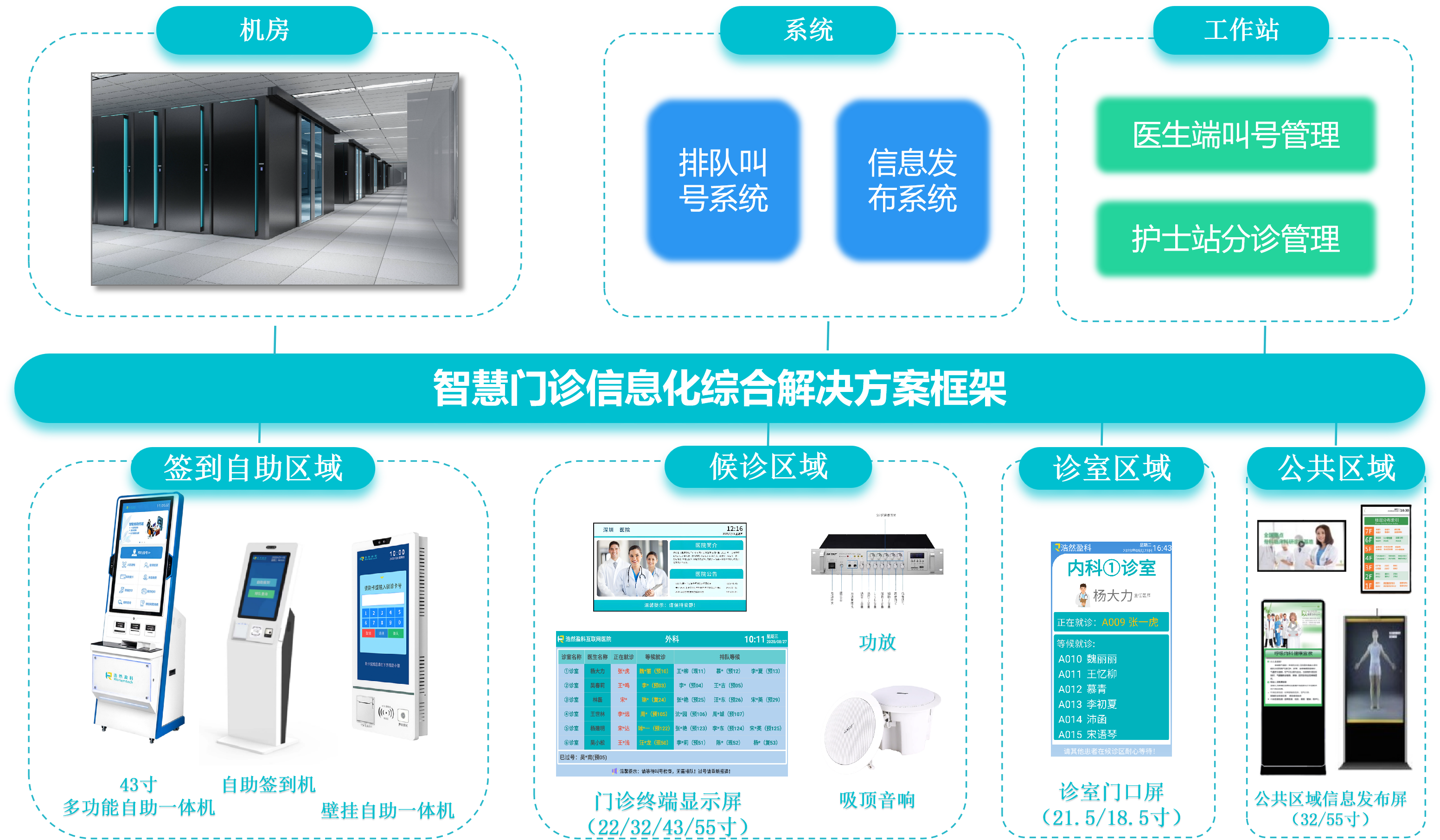 智慧门诊信息化综合解决方案精准破解门诊 “排队混乱、信息不对称、医护协同效率低” 等核心痛点,以排队叫号与信息发布为核心,打造高效、便捷、透明的智慧门诊服务模式。通过自助签到终端简化患者报到流程,减少人工窗口压力;依托多场景显示终端与语音播报系统,实现候诊信息实时同步,缓解患者等待焦虑;通过医护工作站实现分诊与叫号的智能化管理,优化诊疗资源配置。系统全面打通门诊数据链路,实现患者、医护、管理三方信息互通,既提升患者就医体验,又减轻医护工作负荷,助力医院构建高效、有序、人性化的智慧门诊生态,推动门诊服务向数字化、智能化升级。